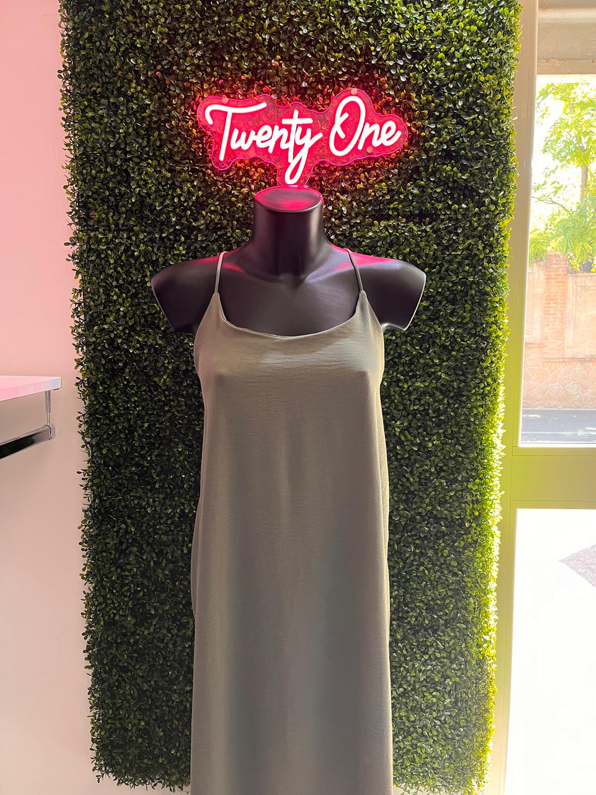 Vestito in lino lungo fino alla caviglia con spacchi laterali